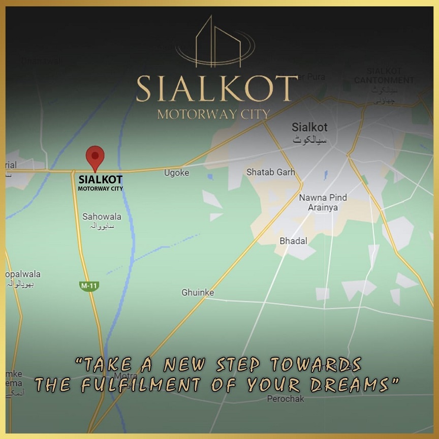 Motorway City Sialkot is a new, upcoming, and modern housing society launching under the banner of Pakistan’s top developers. Located ideally on Lahore – Sialkot Motorway, it’s TMA approved project with 100% clear and acquire land. This beautiful society is planned innovatively to provide a high-standard living, the comforts of the latest world to the beloved people of Sialkot. This society features a safe, secure, and facilitated lifestyle that is matchless. The lush green environment of this venture, sustainable community design, and availability of plots in several sizes adds worth to it. It’s a premium living place with incredible investment chances. Buying in this housing society will return you with huge profits.